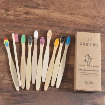 Colorful Kids Eco-Friendly Bamboo Toothbrushes – 10 Piece Set
