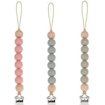 BPA-Free Silicone Pacifier Clip Chain with Wooden Beads