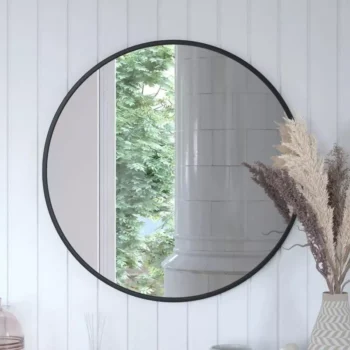 Elegant Round Metal Decorative Wall Mirror – 17″ Beveled Glass Mirror for Stylish Home Decor