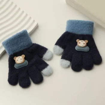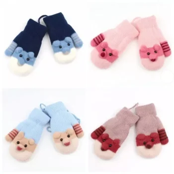Adorable Cartoon Bear Knit Gloves for Toddlers – Warm and Cozy Acrylic Mittens