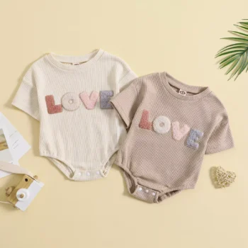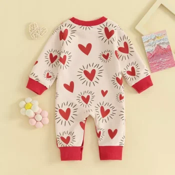 Pink Heart Pattern Baby Girl Romper & Bow Knot Headdress Set (0-18M)