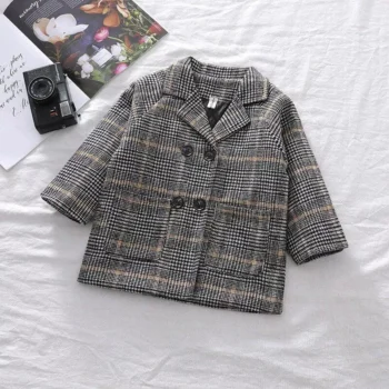 Classic Grid Woolen Trench Coat for Kids – Versatile Outerwear for Boys and Girls