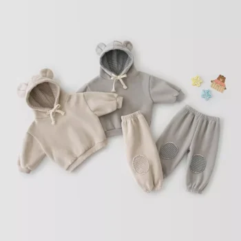 Charming Spring Bear Ears 2-Piece Hooded Sweater and Pants Set for Toddlers