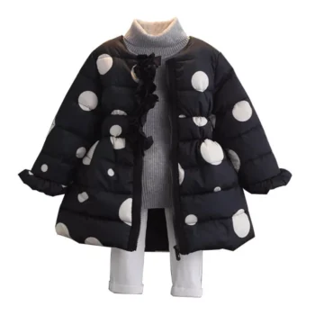 Polka Dot Wadded Long Coat for Kids – Winter Warmth and Style