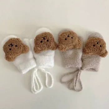 Cozy Cartoon Bear Knitted Mittens for Toddlers – Warm Winter Gloves for Babies 1-4 Years