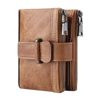 Vintage Cow Leather Men’s Wallet with Zipper and Multiple Compartments
