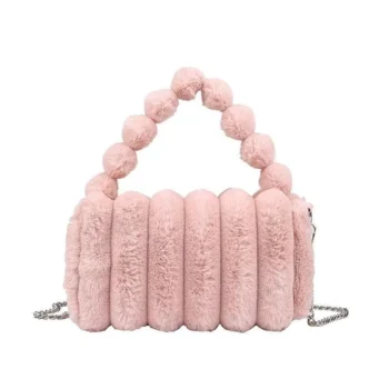 Chic Faux Fur Top-Handle Sling Bag with Removable Shoulder Chain