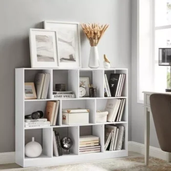 Elegant White Bookshelf with 11 Compartments for Stylish Home Storage
