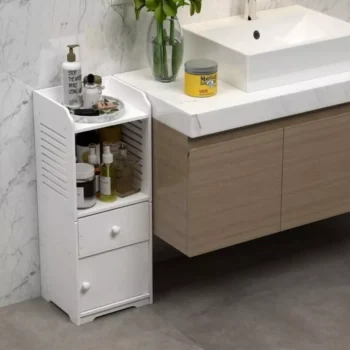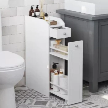 Slim Bathroom Storage Cabinet with Slide-Out Drawers and Toilet Paper Holder