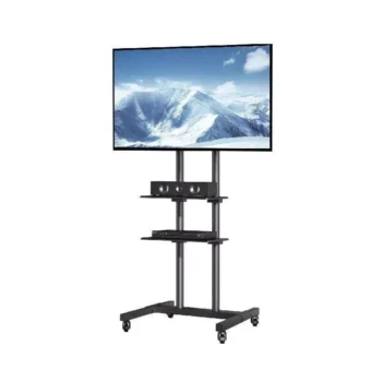 Adjustable Mobile TV Stand with Wheels & Dual Trays