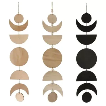 Bohemian Moon Phase Garland – Wooden Wall Hanging for Modern Home Decor