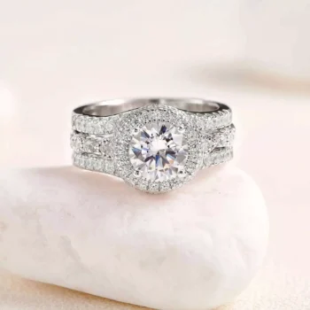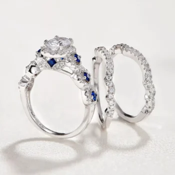 Genuine 925 Sterling Silver Round Shape Wedding Rings Set with AAAAA Cubic Zirconia