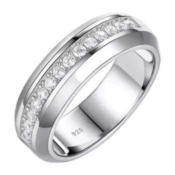Sterling Silver Men’s Wedding Band with Round Cut Cubic Zircon