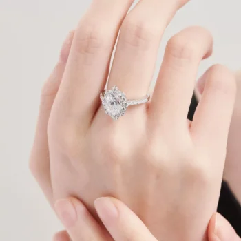 Luxury 925 Sterling Silver Oval Cut Engagement Ring with 2.7Ct Cubic Zircon