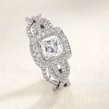 Elegant 925 Sterling Silver Princess Cut Engagement Ring Set