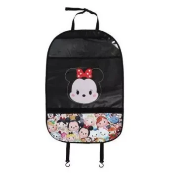 Car Seat Back Protector with Cartoon Design & Storage Pocket