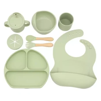 Safe & Easy Baby Feeding Set – Silicone Suction Bowl, Plate, Bibs, Utensils & Cup