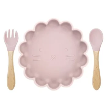 Floral Silicone Baby Feeding Set – Non-slip Bowl with Spoon and Fork for Toddlers