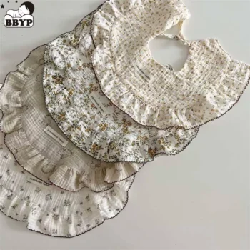 Waterproof Floral Cotton Baby Bibs – Fashionable Unisex Burp Cloths for 0-12 Months