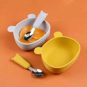 Silicone Baby Feeding Set – Non-Slip, BPA-Free Bowl, Spoon, and Fork
