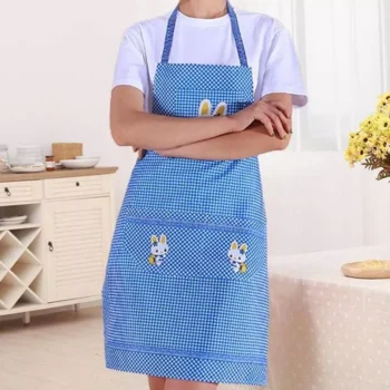 Charming Cartoon Rabbit Waterproof Kitchen Apron with Double Pocket