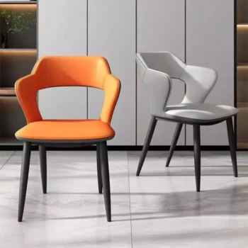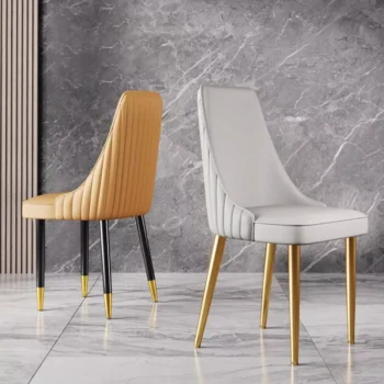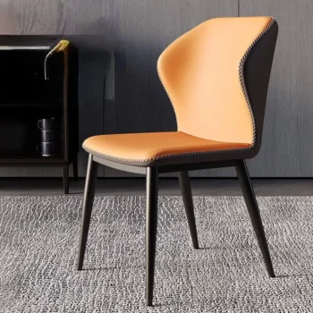 Luxury Nordic Leather Dining Chair with Metal Legs and Ergonomic Backrest
