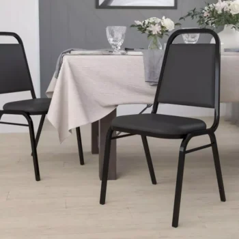 Elegant Black Vinyl Trapezoidal Banquet Chair – High Capacity, Stackable & Versatile
