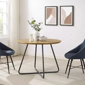 Modern English Oak 40″ Round Dining Table with Metal Legs
