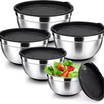 Mixing Bowl Set of 5, Stainless Steel Nesting Bowls for Kitchen