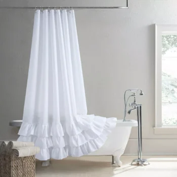 Elegant Ruffled White Boho Waterproof Shower Curtain