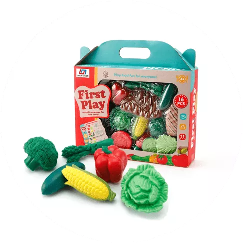 The veggies are made from harmless food-grade TPR plastic. The toys are very realistic, and your kid most probably will want to taste it or bite it – that’s ok. They are made to be explored in a lot of ways!